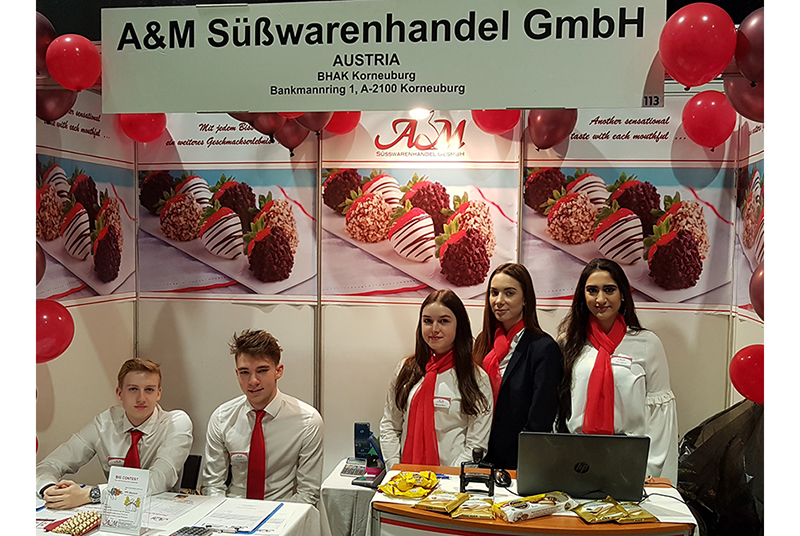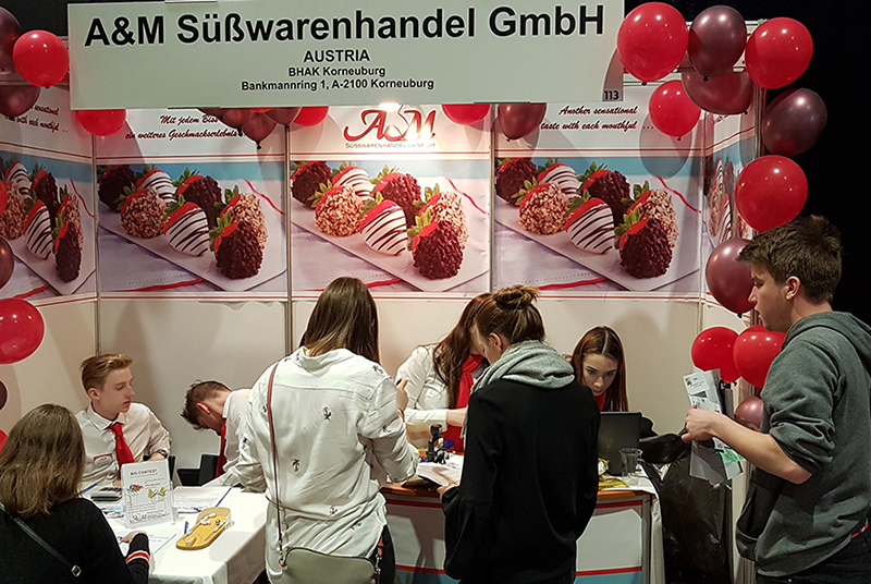 Der Stand der A&M war sehr einladend dekoriert, auf einem Verkauspult und einem Tisch stellten wir händisch und elektronisch Rechnungen aus. Mit unseren Kostproben, dem Gewinnspiel und Gutscheinen lockten wir Kunden zu unserem Stand. Unsere Kostproben kamen bei den Kunden sehr gut an und bei dem Gewinnspiel konnte sie 3,7 oder 10% Rabatt auf ihren Einkauf erhalten. Unsere Mitarbeiter überzeugten die Kunden in einem professionellen Verkaufsgespräch unsere Produkte zu kaufen, die Gespräche wurden in Englisch und Deutsch geführt. Wir traten den Kunden immer höflich und freundlich gegenüber.