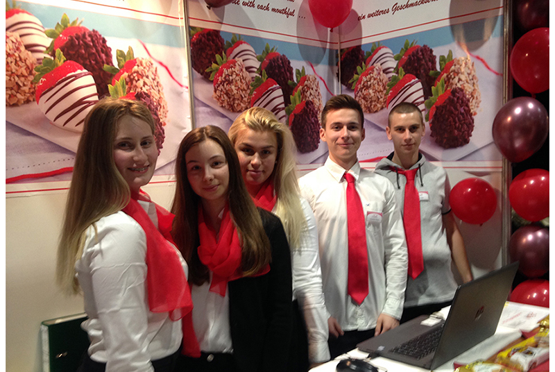 Unsere Mitarbeiter waren mit roten Halstüchern und roten Krawatten perfekt auf den Stand abgestimmt. Während ein Mitarbeiterteam den Stand betreute wurde von einem weiteren Team fleißig bei den anderen Ständen der Messe eingekauft.